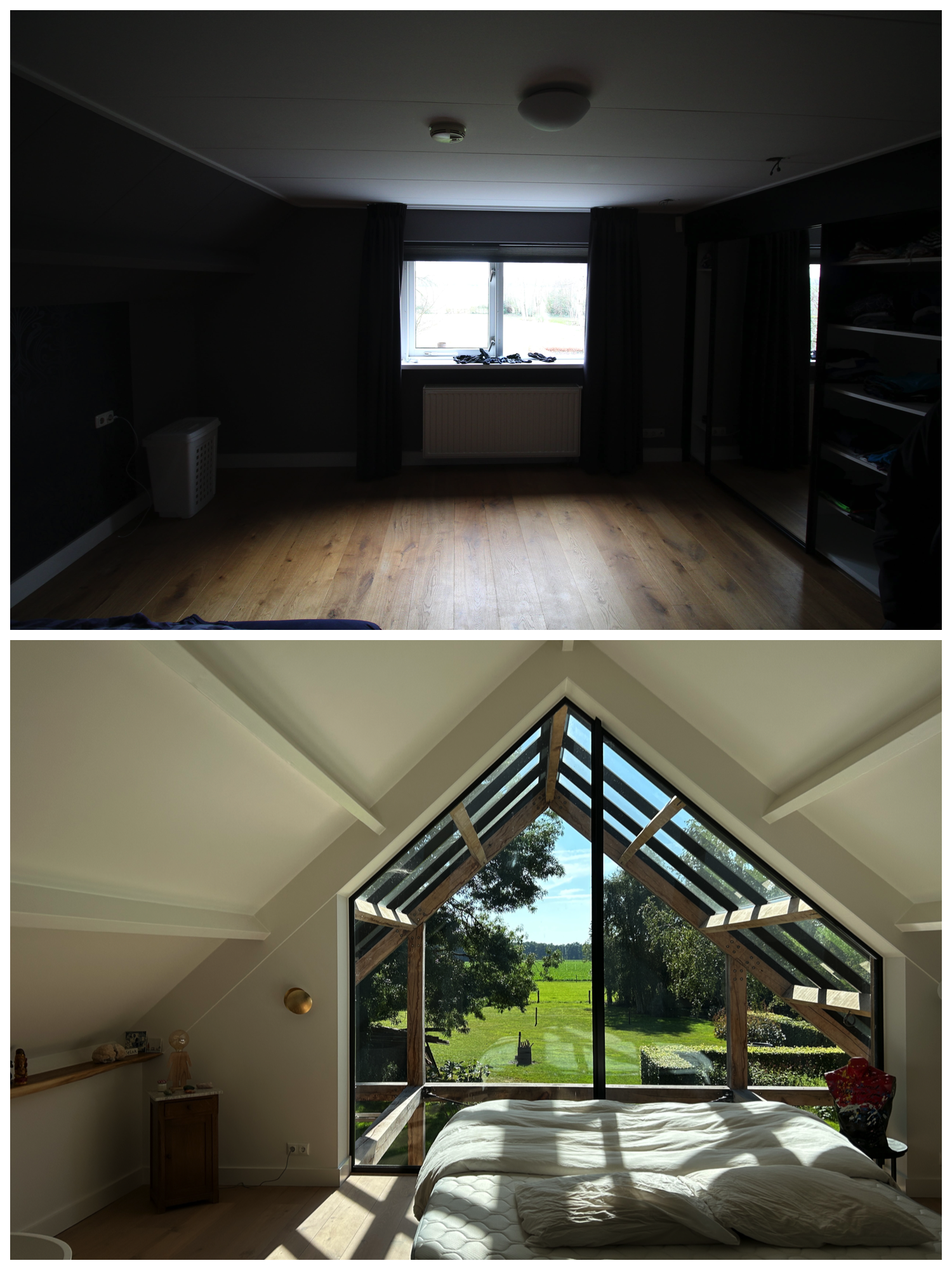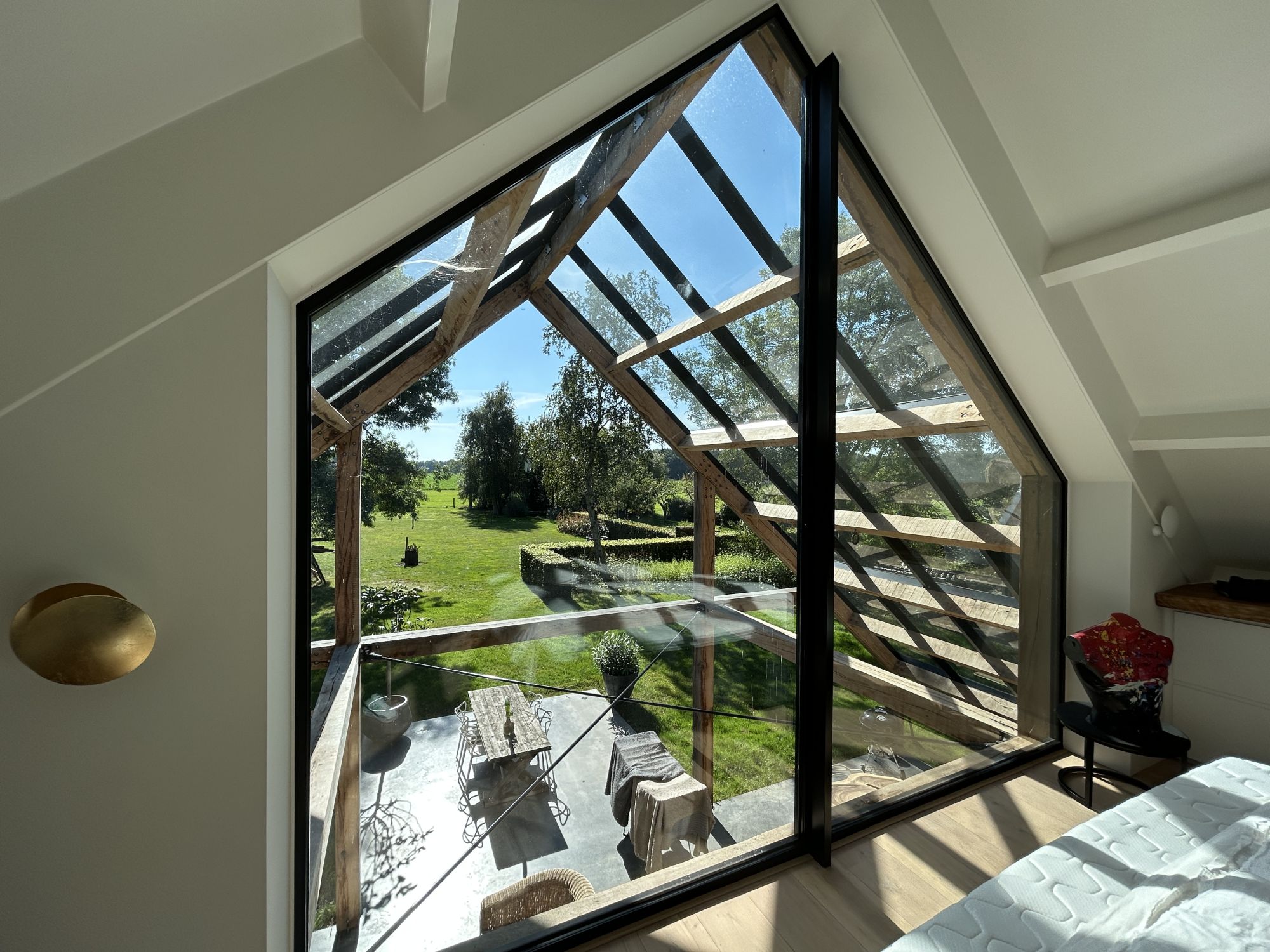 Na deze verbouw biedt de woning op de begane grond en verdieping een prachtig uitzicht op de weidse omgeving, de es.